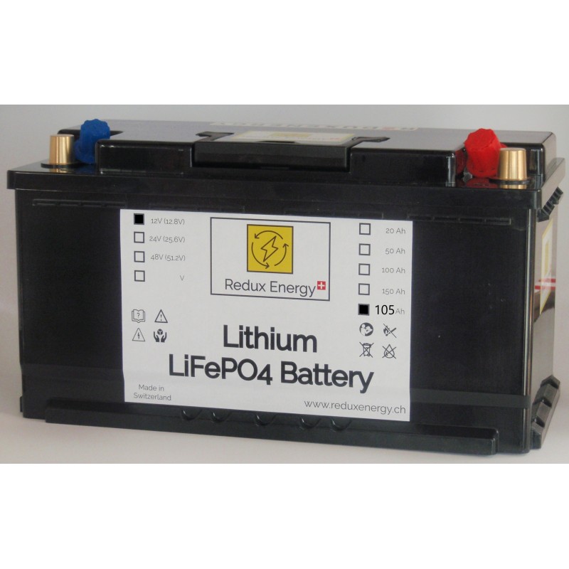 Kompakte und leistungsstarke 12V 105Ah Lithiumbatterie mit einer Nennspannung von 12.8V. Von der nutzbaren Kapazität her vergleichbar mit einer 210Ah Bleibatterie (Blei/Gel/AGM). Der perfekter Ersatz für 12V Blei-Säure Batterien (Blei/Gel/AGM). Pro Zyklus günstiger als eine Bleibatterie: Blei raus – Lithium rein!